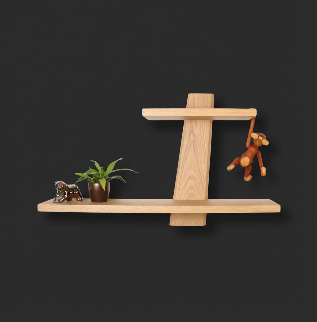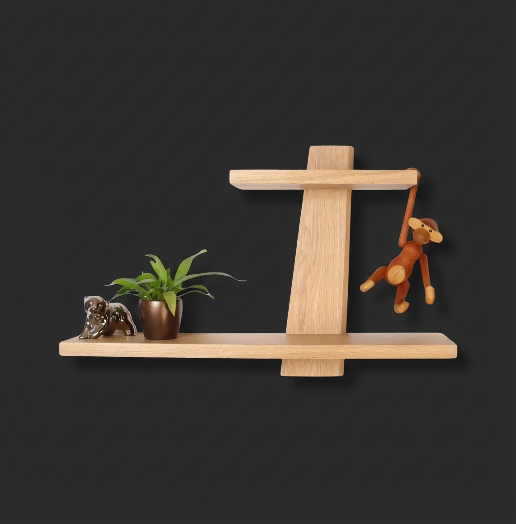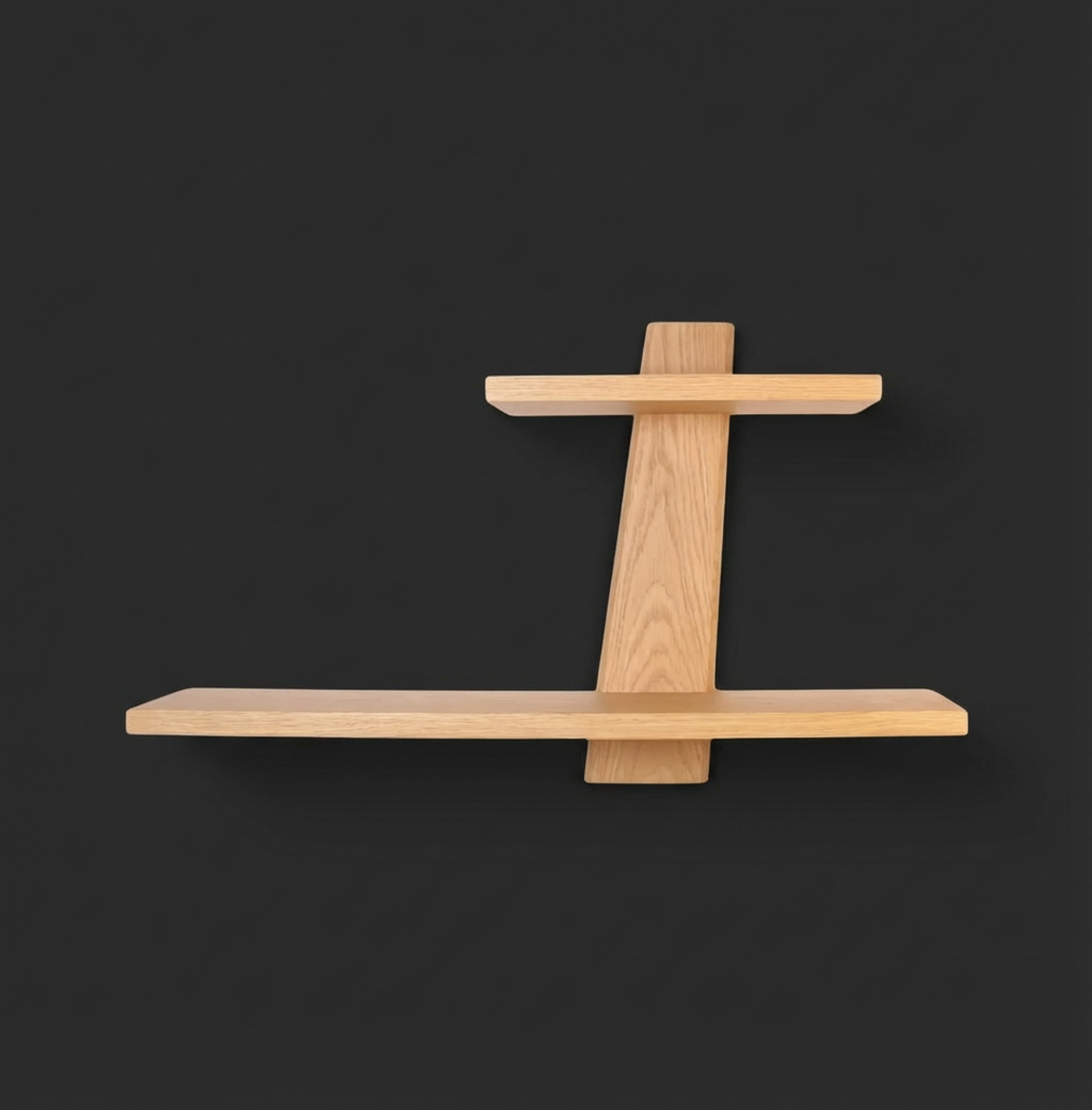 Vi har taget det klassiske kors-koncept, dekonstrueret det og genopbygget det fra bunden. Ved at ændre dimensionerne og optimere de tekniske samlinger, har vi skabt en hylde, der ikke bare hænger på væggen, men som ejer rummet. Det er ikke blot en kopi – det er en teknisk og æstetisk opgradering af et originalt ønske.